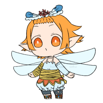 悪戯好きな橙色の精霊。フーガは一心同体の存在で、色以外瓜二つ。